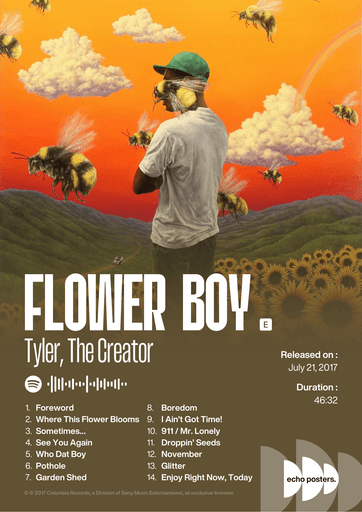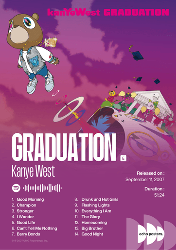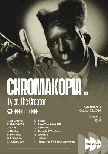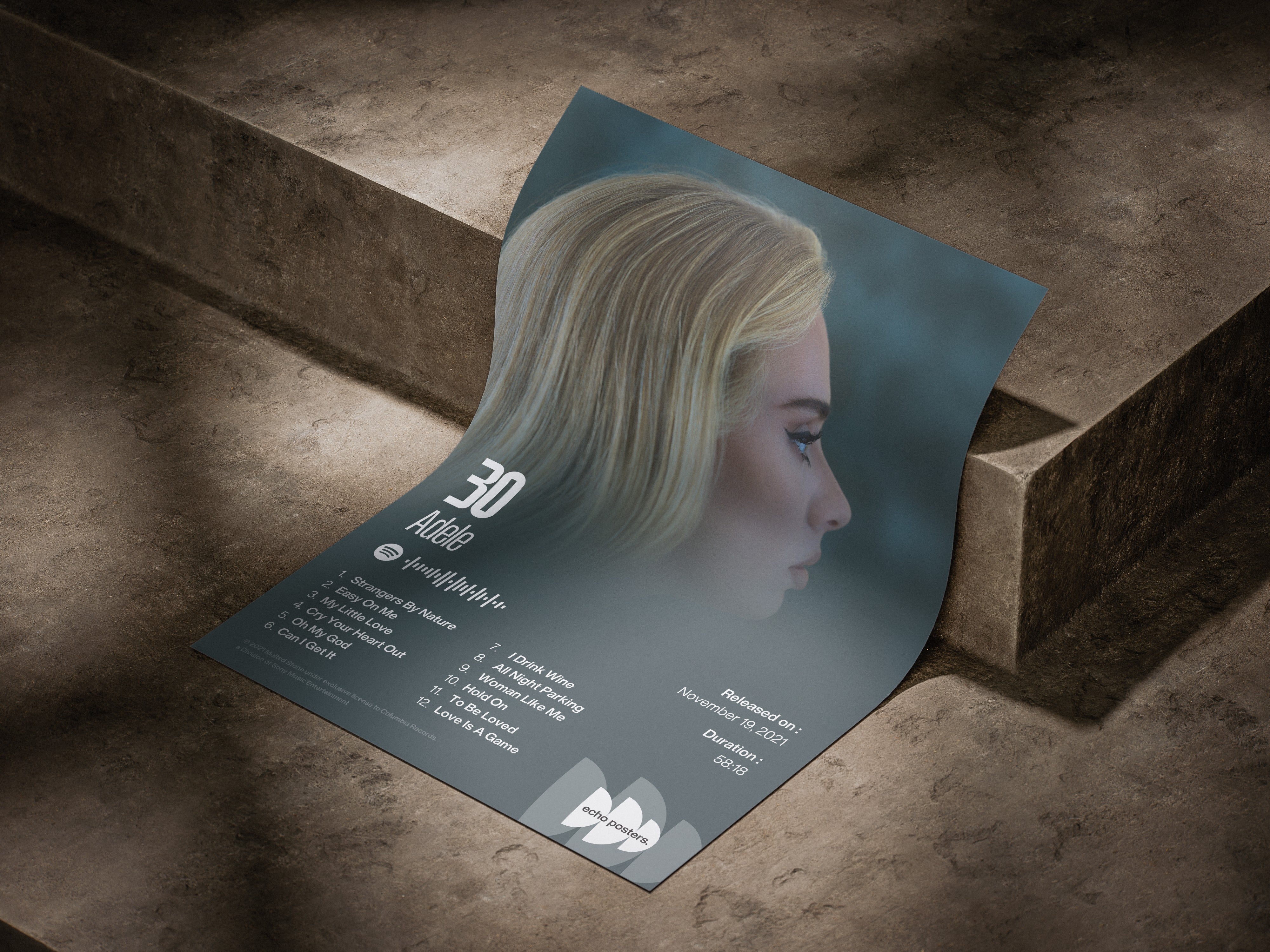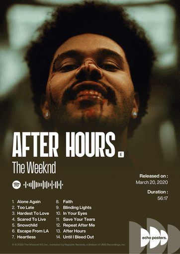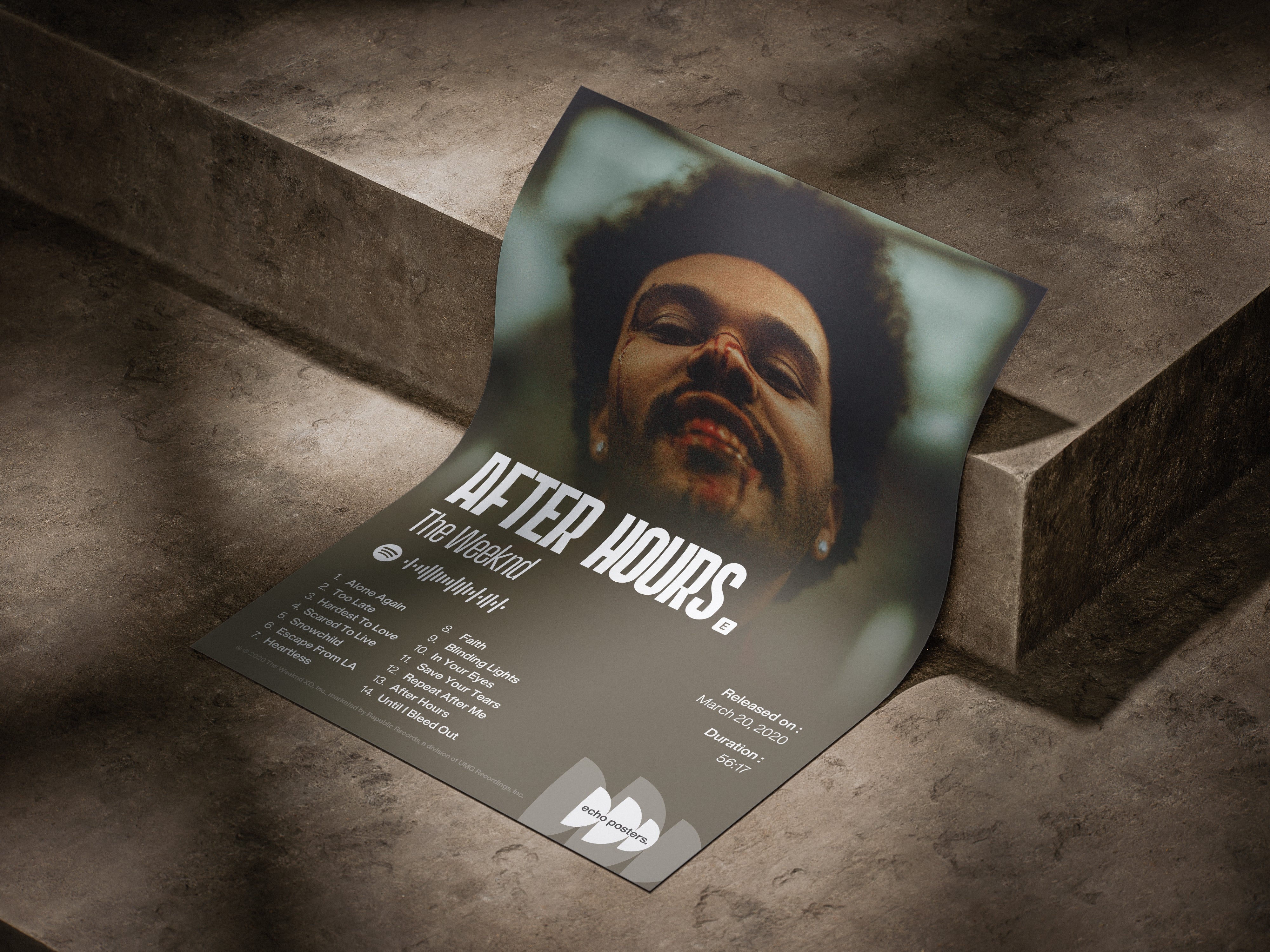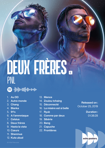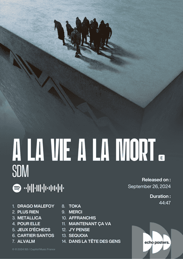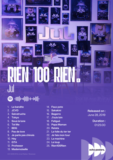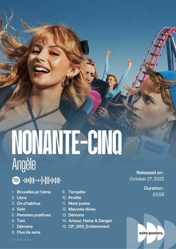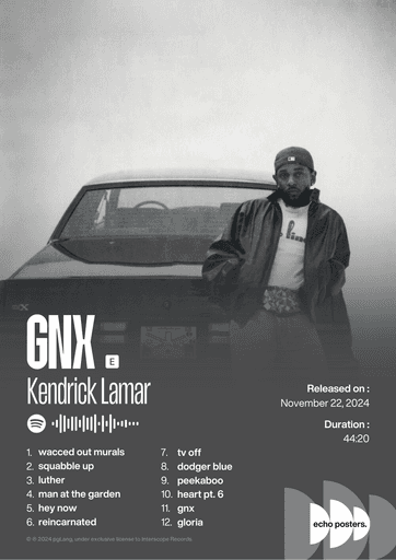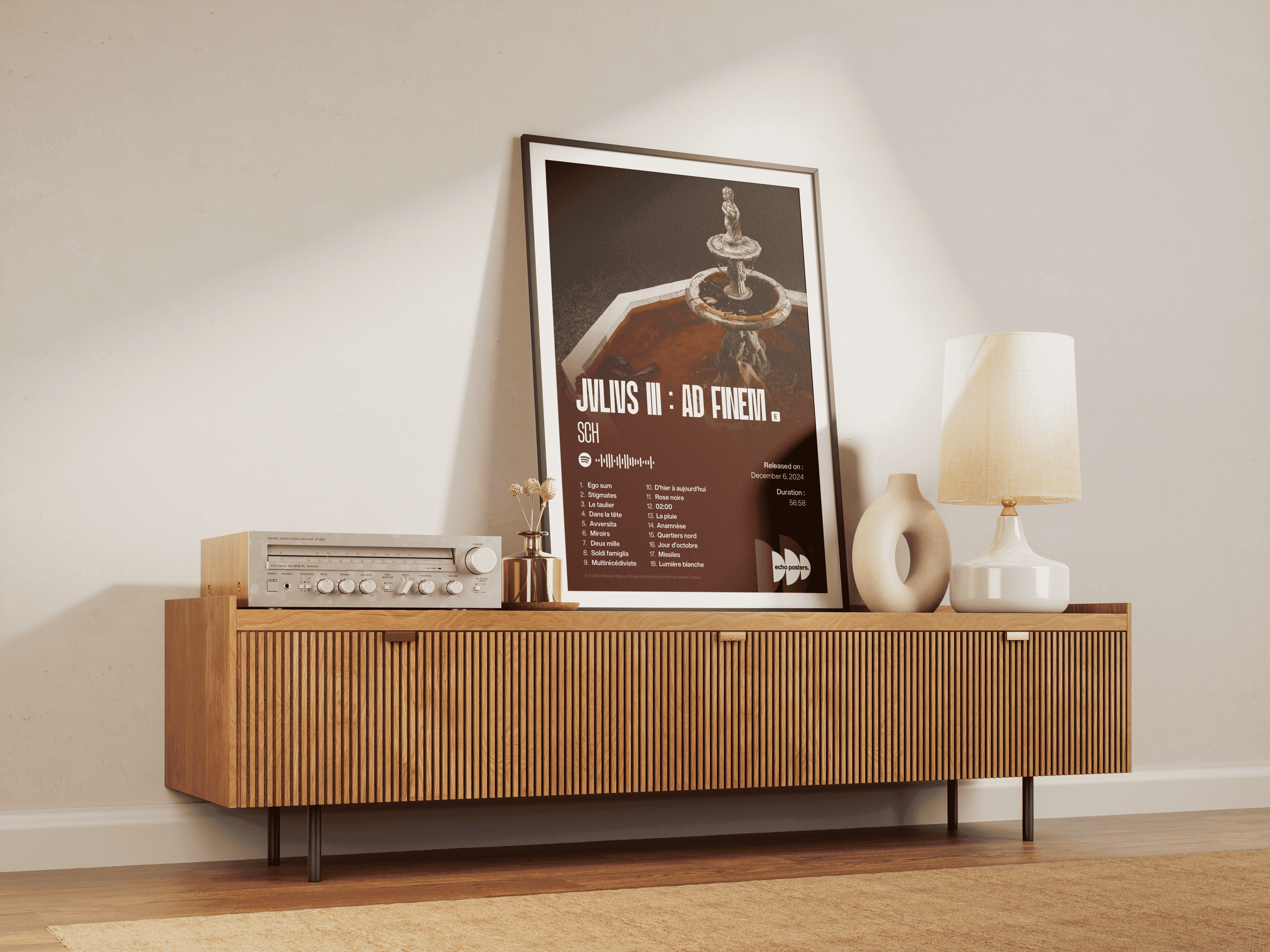 Le poster comporte un Spotify code : un code-barres que vous pouvez scanner à l'aide de l'app Spotify, ce qui ouvre instantanément l'album sur votre téléphone. Cela rend le poster en quelque sorte interactif.